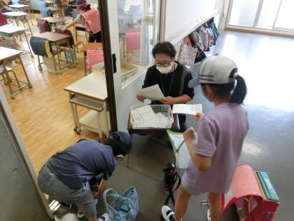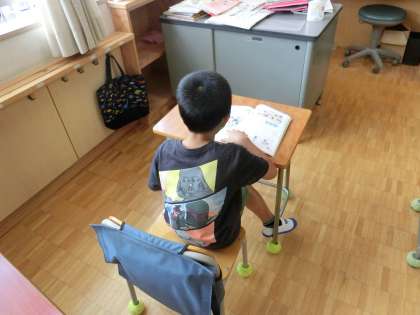 教室に入る前に、健康観察表を先生に提出しています。まだ2回目の登校日ですが、すでに定着しているようです。朝の身支度を済ませた後、自分の席で静かに教科書を読んで予習している姿を見て頼もしく感じました。