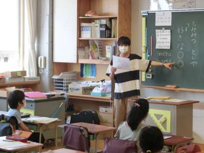 3年生の教室では、図工の授業を担当する先生が自己紹介をしました。来週の図工の学習では、「好きな○○」をテーマに絵を描くそうです。児童からは「楽しそう」「早くやってみたい」という声が聞こえてきました。