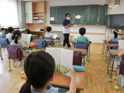 国語の学習で「ふきのとう」を音読しました。先生のお手本に続き、上手に音読できていました。学習中の姿勢も大変立派でした。