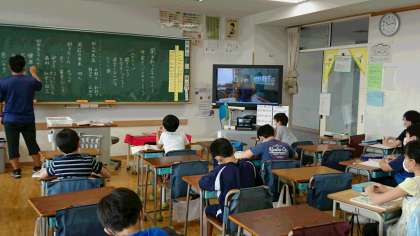 教室で音楽や図工の授業を行ったり、撮影した教材を使って国語の授業をしたりするなど、工夫をした授業をしています。学校ならではの取組です。