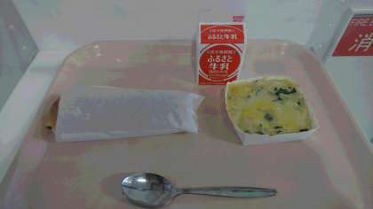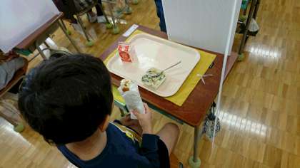 今日から給食もスタートです。1日目ということで、配膳がしやすいメニューになっています。今日が初めての給食となる1年生は、静かにしっかりと食べていました。