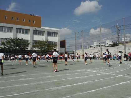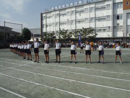 応援団は、紅白に分かれず「青」の襷や鉢巻きを身に付け、全校児童の応援をしました。