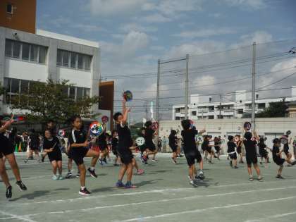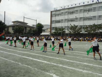 2年生「GUTS2」では、旗を使った表現を行いました。一人ひとりの旗の振り方に力が込められ、見ごたえ十分でした。「ビバ!」の声が京西小の校庭中に響きました。
