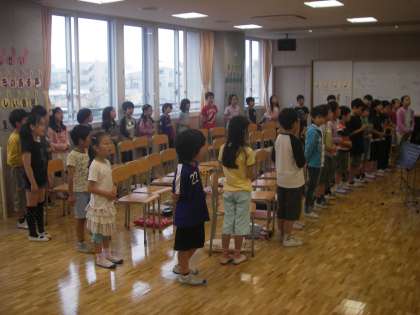 17日1校時、3年1組は音楽の授業です。音楽室から素敵な歌声が響いてきます。元気な歌声です。音楽室は明るくなりました。しかし、保護者の方はちょっと入りにくそうでした。廊下から子どもたちの歌声を聞いています。