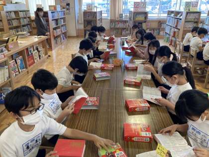 本日、国語の学習で百科事典の使い方を司書の先生から教えてもらいました。
