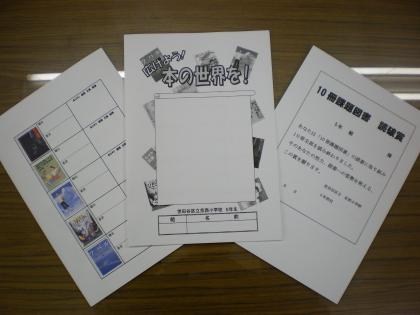 今週から秋の読書月間が始まりました。秋の夜長はテレビやゲームを一休みして読書でもいかがですか?親子でそれぞれ本を読んだり、一冊の本を一緒に読んだり・・・。5年生では読書月間に合わせて、「広げよう!本の世界を!」と題し、課題図書10冊を読破しようと読書カードを作りました。課題図書を読むと、その本のシールを読書カードに貼ります。たくさんの本を読みましょうね。