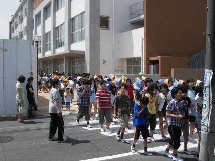 七月の避難訓練は「火事」の想定でした。家庭科室から出火ということで、「お・か・し・も」の約束を守り、第二校庭に避難しました。静かに整然と非難する姿に感心しました。三月の地震の経験が生きています。