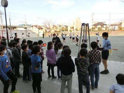 話を聞く3年生は、目を輝かせながら話を聞いたり、活動の様子を見学したりしていました。