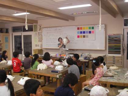 3年生の「不思議なお面」の授業です。先生の説明を子どもたちは真剣に聴いています。