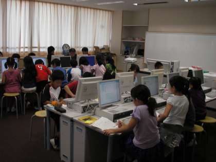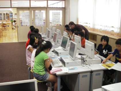 パソコン室に行くと3年生がパソコンに向かっていました。パソコンはこれからの社会を作っていく子どもたちが身につけなければならないものの一つです。