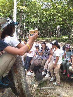 ハイキングの終点、龍頭の滝からバスで光徳牧場にきました。頑張って歩き通したので、みんなでアイスクリームを食べました。濃厚な味でとても美味しいアイスクリームでした。