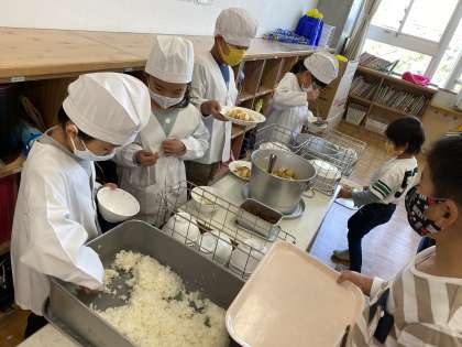 一つ一つ経験を重ね、自分たちで上手に配膳できるように練習していきます。