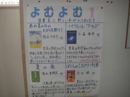 高学年の掲示板には、お勧めの本の紹介が掲示されています。