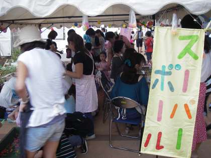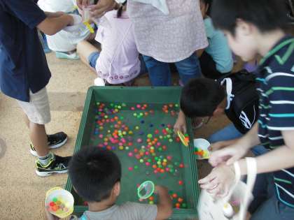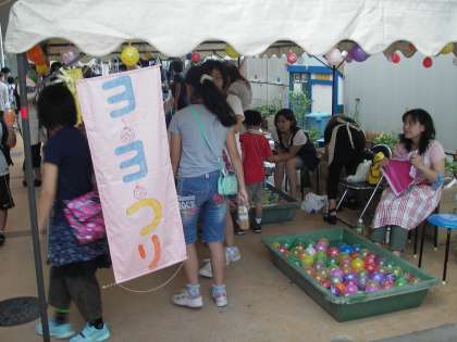 3時の開始と同時に子どもたちが集まってきました。夏まつりの会場のあちこちで風船のヨーヨーを手にしている子どもたちの姿が見られました。