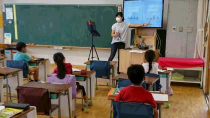 9月3日はA班登校、B班自宅学習の分散登校初日です。どのクラスも、工夫をしながら授業を進めていました。学童参加の子どもたちも、イヤホンを付けて担任の話を良く聞いていました。