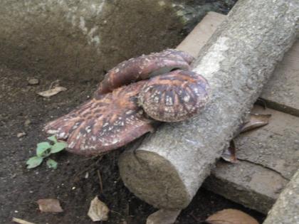 6月の川場移動教室で一緒にバスで帰ってきた、しいたけを駒うちした枝から椎茸が発芽しました。枝は1年生教室の裏の日当たりの悪い場所に置いてあります。日の当たらない場所でも、根を広げ、発芽した椎茸。とても頭が下がります。