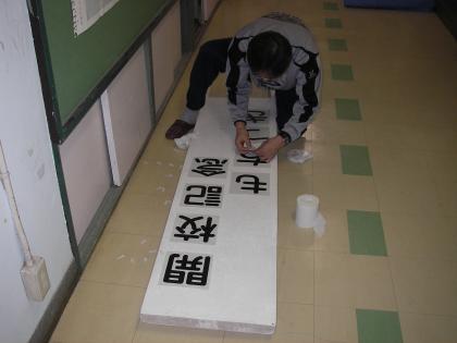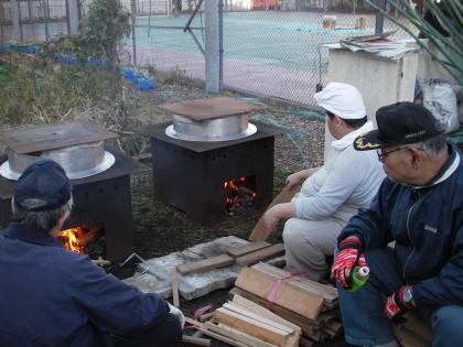 餅つき会までに係の方々は、道具の点検・修理、あいさつ回り、係の分担、人の手配、諸連絡等々様々に取り組んできました。前日には、臼等を準備し、看板も作成しました。