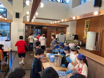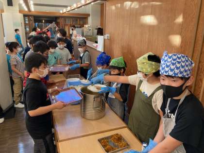 なかのビレジも配膳しています。カレーの美味しい匂いが食堂に漂っています。