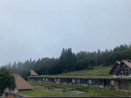 おはようございます。なかのビレジは昨夜の雨のせいか霧に包まれています。