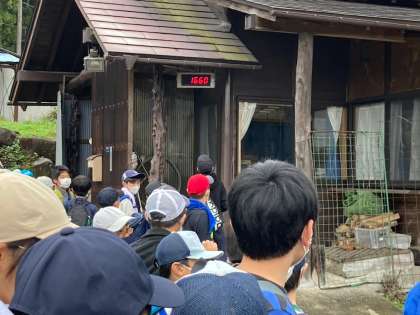 村めぐりです。木材のリサイクル工場に寄って、クラスみんなの体重を測ってもらいました!