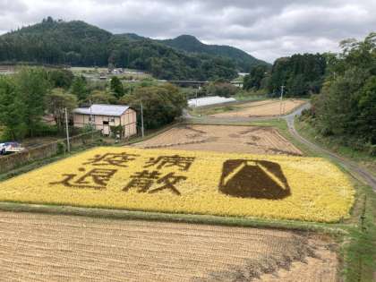 ふれあい橋です。この橋の上から田んぼアートが見えました!