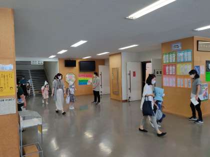 4時間目の避難訓練の後、1年生の引き渡し訓練を行いました。大地震が発生した後や非常時に保護者の方に確実に児童を引き渡すための訓練です。