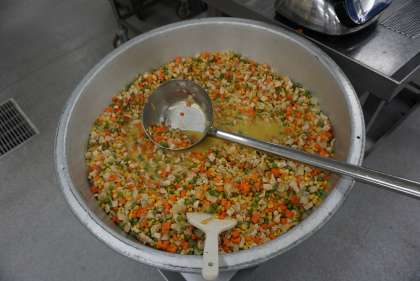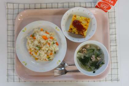 3色ピラフは、にんじん・コーン・グリンピースでとてもきれいです!