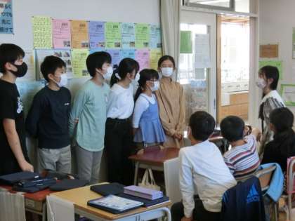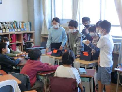 5年生が入念に準備をした資料を、4年生の子どもたちは興味津々で見ていました。