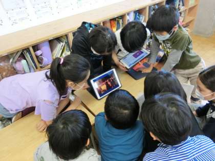 実際に移動教室中に撮影した写真を見せてくれたり、キャンプファイヤーの時におどったダンスを披露してくれたりしました。