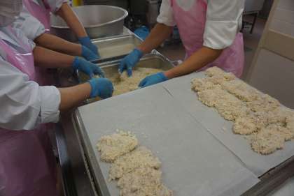 たまねぎ(北海道)、じゃがいも(北海道)、えのき(長野)、きゃべつ(群馬)、ちんげんさい(静岡)、にんじん(北海道)、米(岩手)、鶏肉(宮崎)