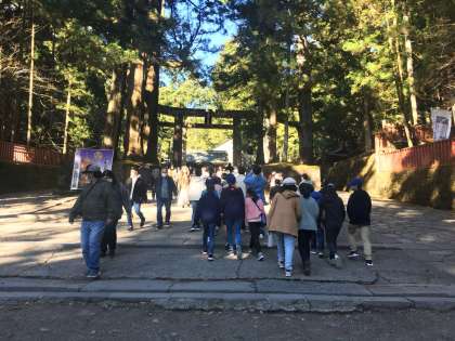 東照宮に着きました。休日なので一般の方も多いです。歩くと暑いです。