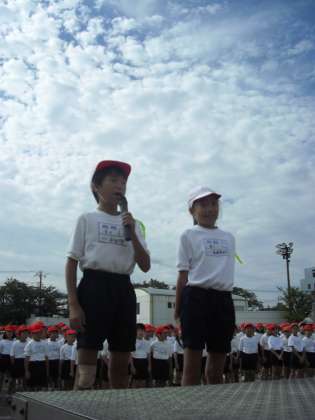 広々とした校庭は気持ちよく、子どもたちは堂々と入場行進をし開会式を行いました。一年生の「始めの言葉」はとてもかわいらしく、頑張ろうという気持になりました。6年生の「誓いの言葉」は力強く頼もしさを感じました。
