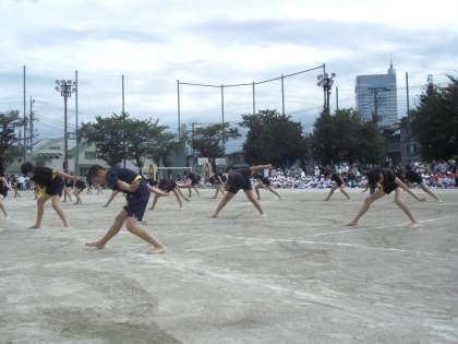 2年生は「八木節」です。隊形の変化も工夫して衣装、小道具も考えて本番に臨みました。1年生は「ソイヤ!」です。何度うちわを取り換えたでしょうか、先生の熱い思いに何度も何度も練習し、頑張りました。本番では、リズムがぴたりとあい、かわいい中にも歯切れよく踊りました。5年生は「京西ソーラン」です。京西小学校5年生の定番です。昨年は夏のサマーステージでも発表しました。腰を低く落とし力強く踊ります。今年はあえて法被を着ず、腰をおとした力強さを見てもらおうと頑張りました。