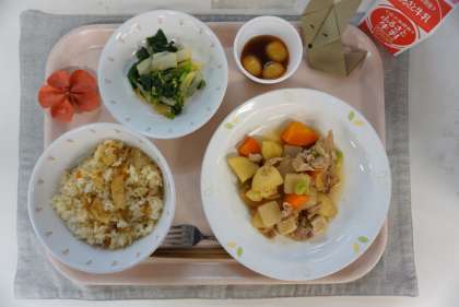 だんごをお供えする習慣があるため、給食ではみたらし団子を食べました。