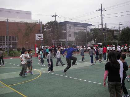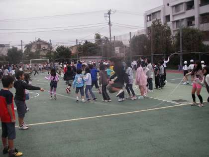 校庭がないので縄飛びを体力づくりの中心に据えて今年度は取り組んできています。今はスポーツをするのにとても良い季節です。