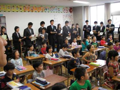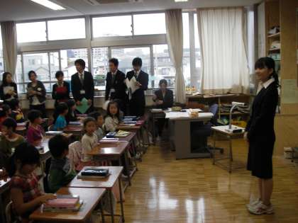 20日(木)5時間目に我妻先生の研究授業がありました。今年度世田谷区の教員になった先生方が40人ほど授業参観に見えました。算数の授業です。「たしざん」の授業の中で話し合い活動を取り入れていくということをねらいとして行いました。緊張したようには見えず、堂々と授業を展開していました。よい経験になりました。このような経験を数多く積み重ねることにより、よい先生に成長していくのです。