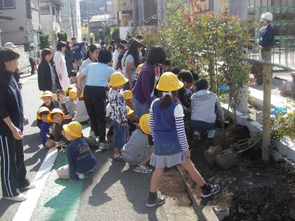 校舎や校庭を造ってもらうだけでなく、子どもたちにもできることに参加しようというものです。自分たちが植えた木です。記念になり、5年後10年後にも残ります。自分たちが植えた木が校庭を守っているのです。京西小学校を大切にする心が芽生えることを願っています。