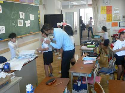 担任の先生にお聞きしたところ、教科の勉強をしました。ということでした。僕の好きな教科は算数です。理科です。とジャンケンで負けた人が英語で言います。そして、ジャンケン列車のように勝った人の後ろについていきます。