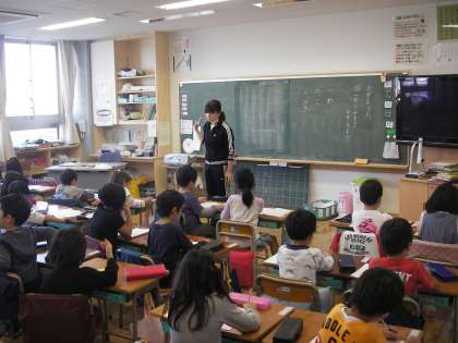 10月31日から学校公開週間が始まりました。31日は午前仲は家庭教育学級でしたので午後、5時間目に1年生の教室をのぞいてみました。