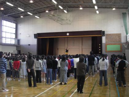 校長は、事故、怪我のない、笑顔があふれる年にしたいですと自分の願いを伝え、子どもたちにもめあてをもって生活してください、との話をしました。3年生児童が3学期に頑張るめあてを発表しました。