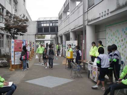 今年も受付は京西小学校のPTAがやってくださっています。校庭ではショートテニスや昔遊びやカーリングなどのコーナーがあります。