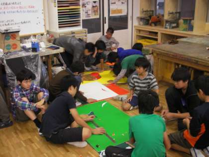 図工室に行くと6年生が共同制作を作っていました。ワンダーランド(展覧会)は来週ですから、今はまさに追い込み段階です。みな一生懸命に頑張っています。