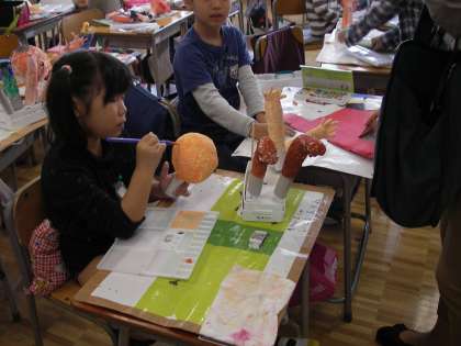 1年生の教室もまさに追い込み段階です。紙粘土人形に色を塗ったり、服を作ったりしています。出来上がりが楽しみです。