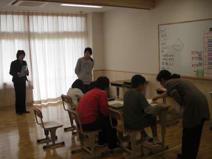 子どもたちは先生の話に耳を傾け、作業に取り組み、楽しく発表しています。普段の在籍校とは違った雰囲気の中でやさしい感じがする中での授業でした。子どもたちの発表する姿はなかなか素敵でした。