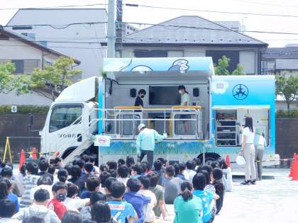 学校には、世田谷区から起震車がやってきました。