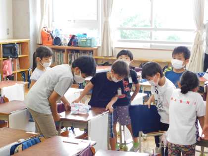 1年生は6年生に掃除の仕方を教わりながらやっていました。