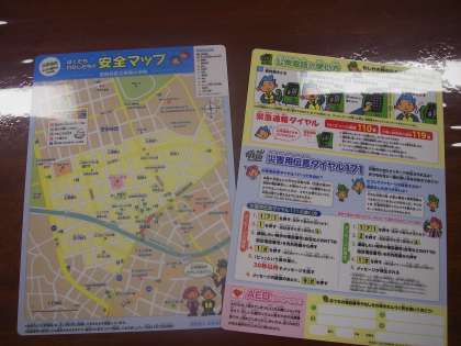 ちょうど三年生が取り組んでいる時に、素敵なプレゼントが届きました。夏の京西アカデミーで「公衆電話の使い方、災害用伝言ダイヤル171」の講座がありました。講座をやってくださった財団法人「日本公衆電話会」が京西小の安全マップの下敷きを作ってくれました。そして「こども手帳」を全児童にプレゼントしてくれました。