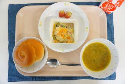 押し麦とにんじんのスープは、具財をみじん切りにして煮込みました。押し麦のつぶつぶとした食感がおいしいスープです。