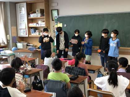 6年生が中心となり、遊びを考え、実行しました。他学年との交流で緊張している児童もいましたが、6年生が優しく声を掛け、一緒に楽しく遊ぶことができました。今後同じ班の人とは、学年を越えて、仲良くなっていくことを期待しています。