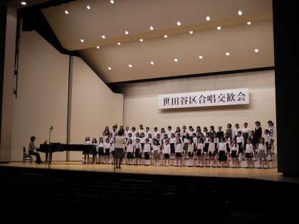 17日は合唱交歓会でした。京西小学校の合唱団ももちろん出演です。60人の子どもたちが舞台に上がり「明日を信じて」「怪獣のバラード」を熱唱しました。